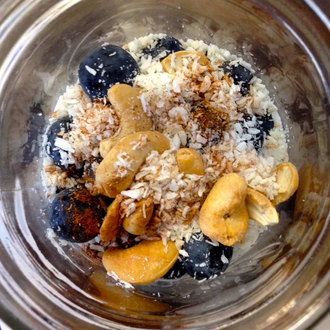“Blueberry Cashew” – fresh blueberries, dried unsweetened coconut, roasted cashews and cinnamon.