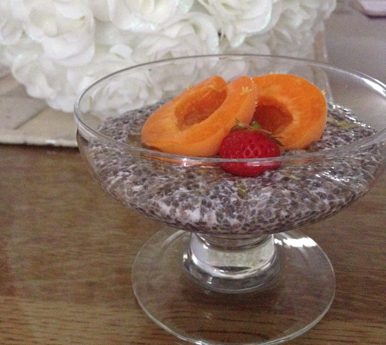 “Lemon-Apricot” – add lemon zest and 1/2 tsp local honey with the milk before refrigerating. Topped with fresh apricot and garnished with more lemon zest.