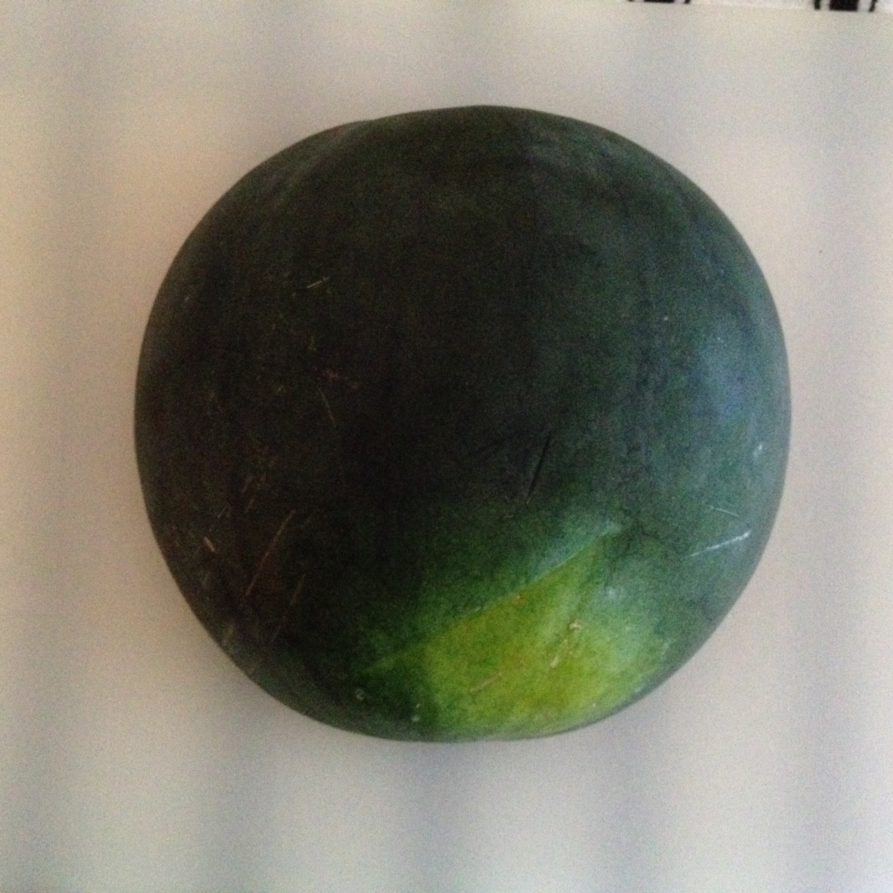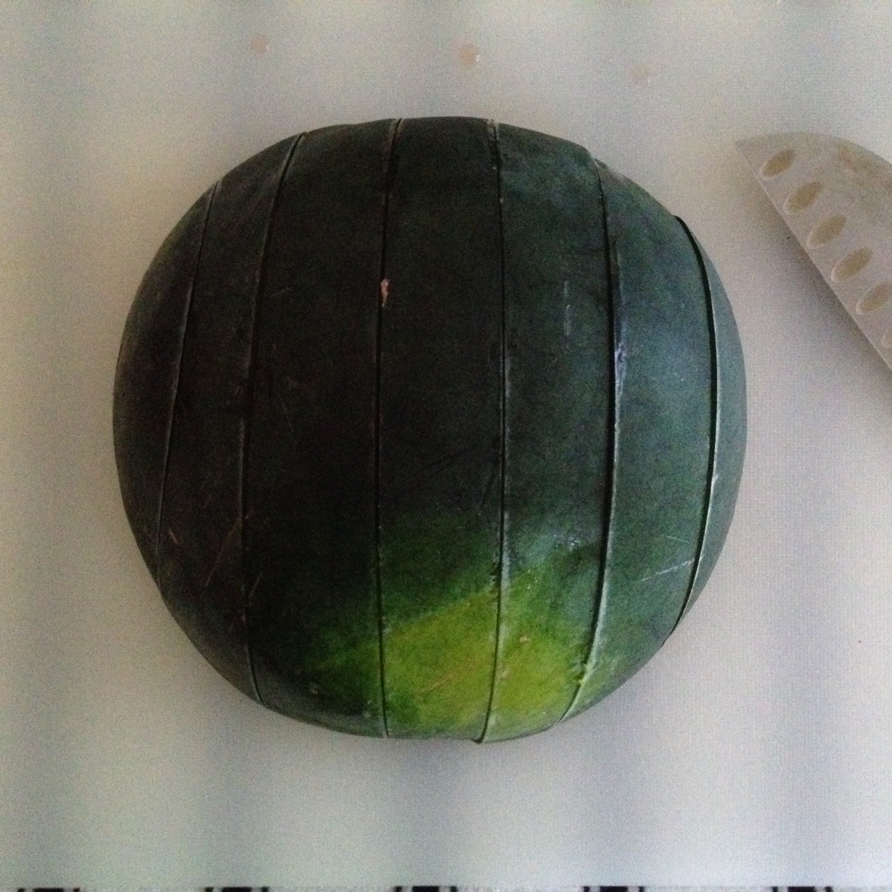 1. Using a large knife, cut watermelon in half and face cut side down.