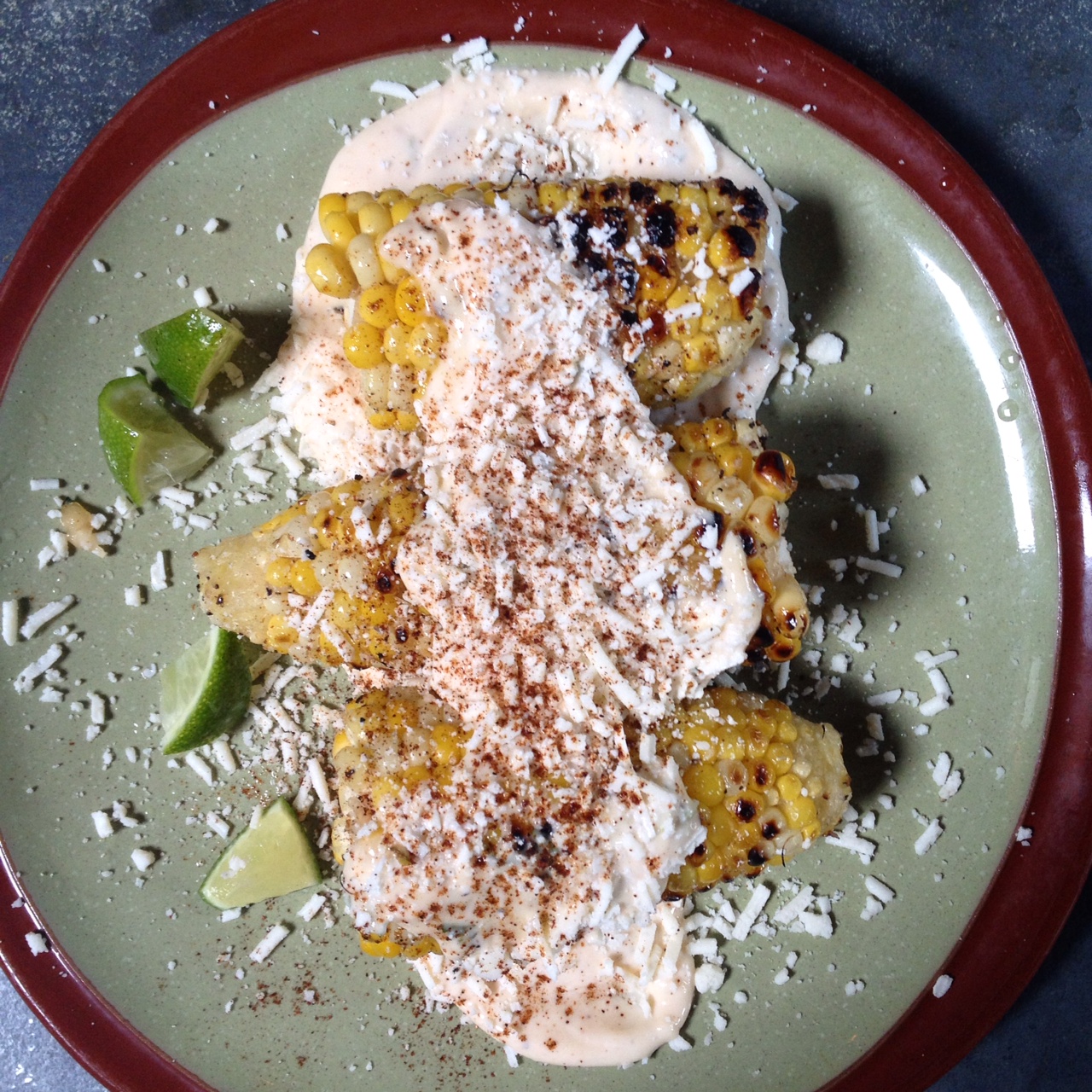 Before Glenn suggested it, my eye was already drawn to the Grilled Street Corn passing by me. I thought, “Definitely getting that!” He also recommended the Carnitas Pork Tacos. Priced per taco, we each got one plus the street corn. I started on the taco first and was blown away at first bite. In fact I was so into it I forgot to take a picture, and that is why you’ll see a half eaten taco below. The delicate pork wrapped in the soft tortilla gave the taco such a light mouthfeel. Along with the flavors of the salsa verde and queso fresco, this taco was delicious. I think I even said, “It’s so light and lovely.” Which made Glenn laugh since he’s never heard anyone describe a taco as lovely before. It truly was.
