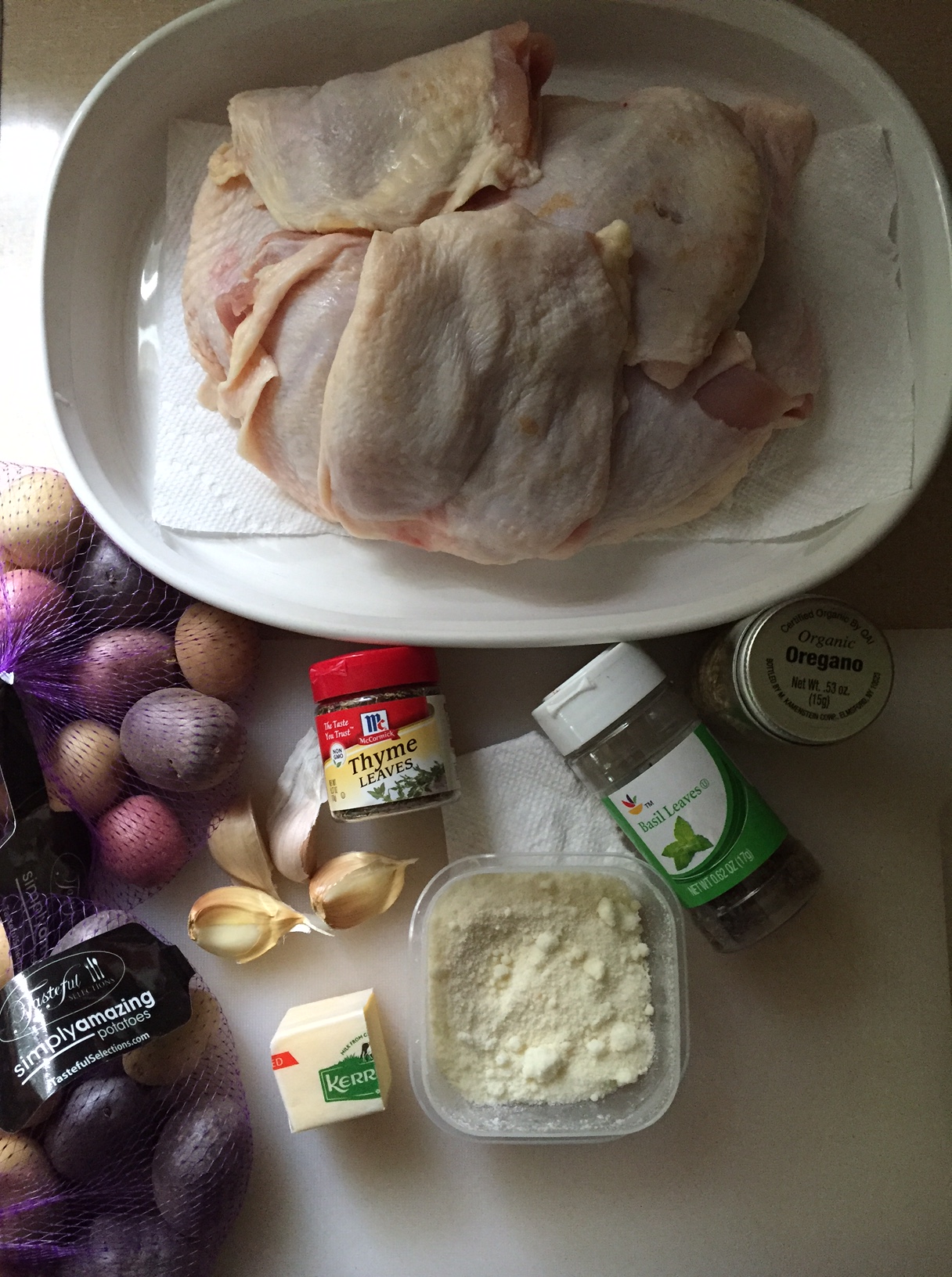 8 bone-in, skin-on, chicken thighs