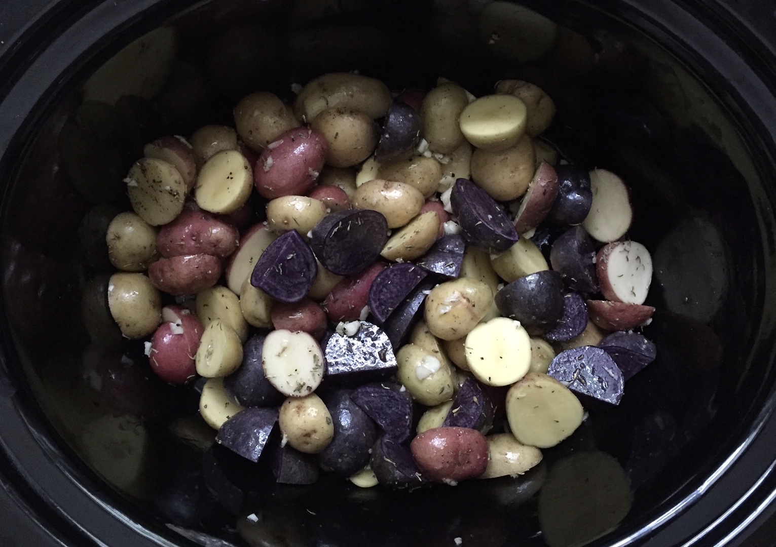 Note: I set my slow cooker for 6-1/2 hours and everything was cooked through perfectly. Depending on your crock pot, size of potatoes and chicken, adjust time accordingly.