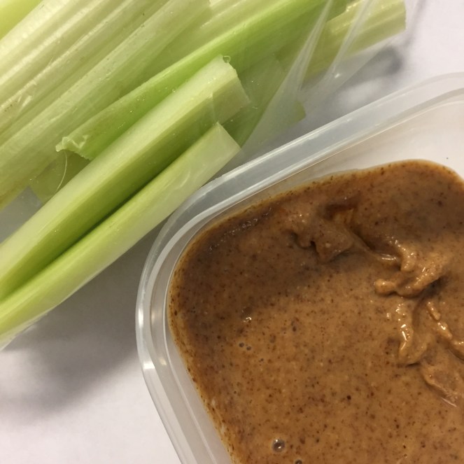 You’ll notice from Social that I LOVE celery and almond butter as a mid-morning snack. This is probably my number one because celery is full of water and fiber, and almond butter provides the healthy fat I need to keep me full and satisfied in between meals.